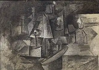 Картина является типичным примером аналитического кубизма. Особое значение Пикассо придаёт геометрическому анализу формы. Он разбивает объёмы на многогранные поверхности. Благодаря сходным текстурам, прорисованным мелкими штрихами, предметы становятся неотличимыми друг от друга. Отдельные объекты не имеют чётких границ. Серо-коричневые оттенки объединяют всю композицию, делают её монохромной и однородной. Сложно определить, что художник изобразил на холсте. Об этом можно только догадываться по некоторым деталям, напоминающим расчёску или стеклянный флакон.