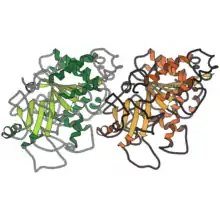 Тубули́н — белок, из которого построены микротрубочки. В них, а также в цитоплазме клеток он находится в форме димера из одной молекулы α-тубулина и одной — β-тубулина. В составе такого димера к каждой молекуле тубулина присоединена молекула ГТФ. У каждой из этих субъединиц выделяют три домена. Форма γ-тубулина принимает участие в нуклеации микротрубочек, то есть образовании затравки, с которой начинается рост. Тубулин способен связывать в растворе молекулы ГТФ. Рост микротрубочек осуществляется только за счет присоединения димеров тубулина, в которых обе субъединицы связаны с молекулами ГТФ. В стенках микротрубочек происходит гидролиз ГТФ, связанной с β-субъединицей, до ГДФ (связанная с α-субъединицей ГТФ стабильна). Связанная с ГДФ форма тубулина легче отделяется от микротрубочек, что определяет динамическую нестабильность микротрубочек — при определенных условиях они быстро распадаются почти полностью.