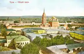 ![]() По часовой стрелке с левого верхнего угла: Тульский кремль, музей оружия и ротонда на набережной реки Упа, Дворянское собрание, Успенский собор в Кремле, Успенский кафедральный собор, памятник Тульскому прянику, дом Белолипецких. | |||||