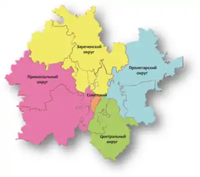 Тула является относительно неблагополучным в плане состояния атмосферы городом. Помимо промышленного сектора, существенное влияние на качественный состав атмосферных слоёв оказывает многочисленный автомобильный транспорт. Средоточие главных городских транспортных артерий — Советский округ, и именно эта часть города испытывает наибольшее атмосферное загрязнение. На втором месте по загрязнённости атмосферы находится Пролетарский округ. Здесь расположено большое количество промышленных объектов, для пополнения сырьевой базы массово используется грузовой автотранспорт. Привокзальный округ характеризуется высоким уровнем атмосферного загрязнения за счёт диоксида азота[18].