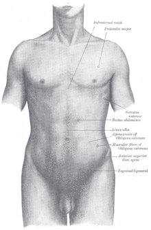 Отдельные части делятся далее на области (Regiones pectoris, Regiones abdominis, Regiones dorsi и Regiones pelvis).