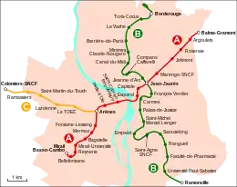 Тулузский метрополитен является частью системы скоростного транспорта Тулузы, в которую входят две линии метрополитена (A и B), а также две линии городских поездов (C и D).