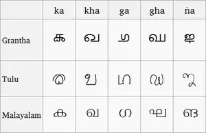 Тулу — оригинальная письменность для дравидийского языка тулу. Произошла от письма грантха, наиболее сходна с письменностью малаялам, также произошедшей от грантха. Использовалась тулуязычными брахманами для записи ведичиских текстов и перевода работ с санскрита на язык тулу. Древнейший пример литературы с использованием алфавита тулу — перевод Махабхараты. Сегодня письмо тулу не используется для записи текстов на языке, для документации используется письмо каннада.