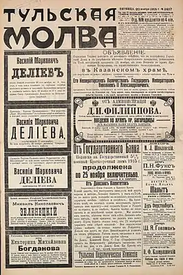 ![]() Один из номеров газеты «Тульская молва», 1915 г. | |