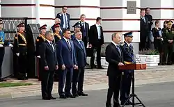| Обращение президента России Владимира Путина к суворовцам | Знамя Тульского Суворовского военного училища | Начальник училища полковник Дмитрий Саксеев, президент РФ Владимир Путин, министр обороны РФ генерал армии Сергей Шойгу | Президент РФ Владимир Путин в учебном классе училища |