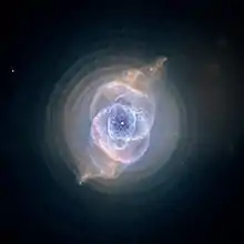 Разновидностью эмиссионных туманностей являются планетарные туманности, образованные верхними истекающими слоями атмосфер звёзд; обычно это оболочка, сброшенная звездой-гигантом. Туманность расширяется и светится в оптическом диапазоне. Первые планетарные туманности были открыты У. Гершелем около 1783 года и названы так за их внешнее сходство с дисками планет. Однако далеко не все планетарные туманности имеют форму диска: многие имеют форму кольца или симметрично вытянуты вдоль некоторого направления (биполярные туманности). Внутри них заметна тонкая структура в виде струй, спиралей, мелких глобул. Скорость расширения планетарных туманностей — 20—40 км/с, диаметр — 0,01—0,1 пк, типичная масса — около 0,1 M⊙, время жизни — около 10 тыс. лет.