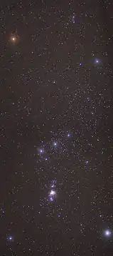 Тума́нность Орио́на (M 42, NGC 1976, Sh-2 281, Большая туманность Ориона[4]) — эмиссионная и отражательная туманность, а также область звездообразования в созвездии Ориона. Имеет видимый блеск около 4m, что делает её не только видимой невооружённым глазом, но и самой яркой диффузной туманностью и одним из самых ярких объектов глубокого космоса. Туманность открыл Никола-Клод Фабри де Пейреск в 1610 году.