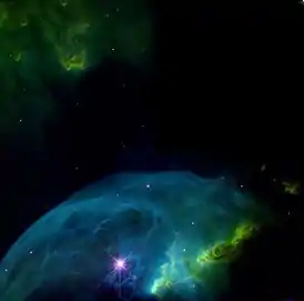 - Фотография туманности Пузырь и соседних межзвёздных газо-пылевых облаков.