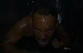 ![]() Юджин Тумс, покрытый собственной желчью, ползёт за Малдером под эскалатором. | |||||