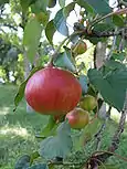 Плоды костянковидные гладкие, висят на длинных плодоножках, диаметром до 6 см, при созревании становятся деревянистыми, тёмно-коричневыми. Семена крупные. Семенное ядро маслянистое, цвета слоновой кости.