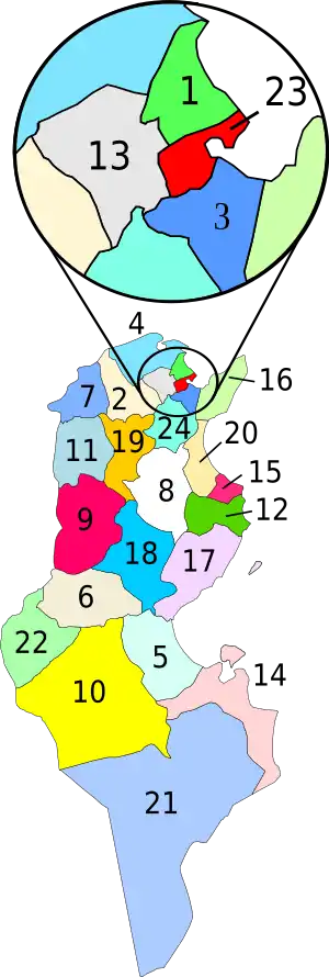| 11 | Эль-Кеф | Эль-Кеф | 4 965 | 257 300 | 51,82 |
