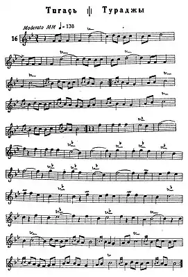 ![]() Ноты музыки танца из сборника «Азербайджанские танцевальные мелодии» Саида Рустамова (Баку, 1937)[1] | |