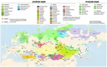 Идея большой лингвистико-генетической семьи была подхвачена турецкими националистами, такими как Зия Гёкалп, для которого туранские народы образовали политическое образование, простирающееся от Босфора до Алтая в Восточной Азии[6].