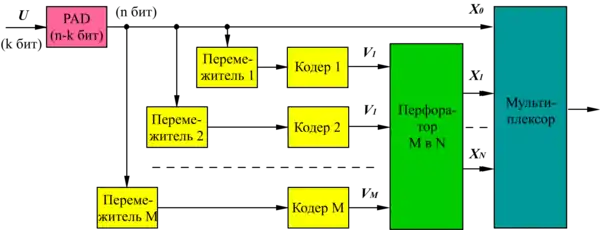 Существует несколько схем турбокодов: