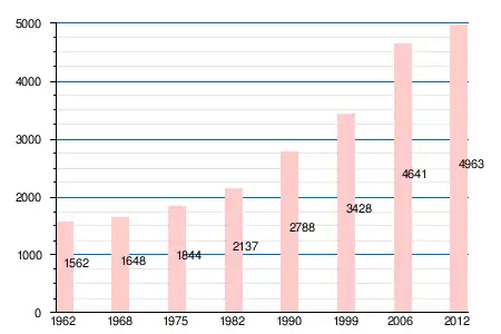 | 1962 | 1968 | 1975 | 1982 | 1990 | 1999 | 2006 | 2011 | 2012 |