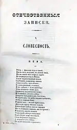 Вначале Тургенев хотел стать поэтом. В 1838 году, студентом третьего курса написал пятистопным ямбом драматическую поэму «Сте́но»[~ 2]. Молодой автор показал эти пробы пера своему преподавателю, профессору российской словесности П. А. Плетнёву. Во время одной из лекций Плетнёв довольно строго разобрал эту поэму, не раскрывая её авторства, и признал, что в сочинителе «что-то есть»[15]. Эти слова побудили юного поэта к написанию ещё ряда стихотворений, два из которых Плетнёв в 1838 году напечатал в журнале «Современник», редактором которого он был. Опубликованы они были за подписью «…..въ». Дебютными стихотворениями стали «Вечер» и «К Венере Медицейской»[8][19].