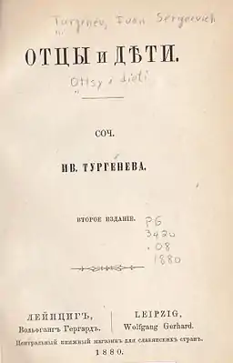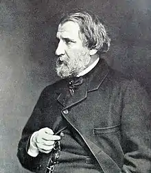 Ива́н Серге́евич Турге́нев (28 октября [9 ноября] 1818, Орёл, Российская империя — 22 августа [3 сентября] 1883, Буживаль, Франция[7]) — русский писатель-реалист[8], поэт, публицист, драматург, прозаик, переводчик[9]. Один из классиков русской литературы, внёсших наиболее значительный вклад в её развитие во второй половине XIX века[10]. Член-корреспондент императорской Академии наук по разряду русского языка и словесности (1860), почётный доктор Оксфордского университета (1879), почётный член Московского университета (1880)[11].