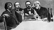 С 1874 года в парижских ресторанах Риша или Пелле проходили знаменитые холостяцкие «обеды пяти» — Флобера, Эдмона Гонкура, Доде, Золя и Тургенева. Идея принадлежала Флоберу, но Тургеневу на них отводилась главная роль. Обеды проходили раз в месяц. На них поднимали разные темы — об особенностях литературы, о структуре французского языка, рассказывали байки[~ 8] и просто наслаждались вкусной пищей. Обеды проходили не только у парижских рестораторов, но и дома у самих писателей[55].