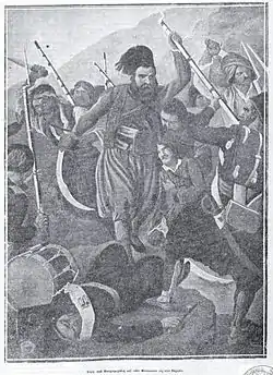 Тем временем египетский флот высадил на побережье Дирос 1500 солдат. Высадка была неожиданной и десант не встретил никакого сопротивления. Гражданское население побежало к Ареополис, думая о переправе на лодках на остров Китира. Но 300 пожилых маниатов и столько же женщин, вооружённые серпами, дубинками, камнями решили дать бой. И тогда здесь была написана ещё одна славная страница греческой истории, подобная Сулиону в 1803 г., где главными героями стали женщины. Бросившись с решительностью на египтян, они заставили их отступить к Дирос. По мере того, как египтяне отступали, всё больше бойцов подходило из окрестных сел и тогда началась паника и бегство к шлюпкам. Турко-египтяне стали взывать о помощи к своим кораблям, капитаны которых вооружили шлюпки и послали их на выручку. Одновременно корабли начали непрерывный артобстрел, выпустив около 1 тыс. ядер. Но это не только не устрашило маниатов и маниаток, но увеличило их боевой пыл. Показателен случай маниатки, нагнавшей и утопившей плавающего албанца, как месть за сожжённое поле.[5] Десант потерял убитыми до 1 тыс. человек. Ибрагим, как бы это ни было постыдно, должен был согласится с тем, что на этот раз его цель разрушить Мани не удалась.