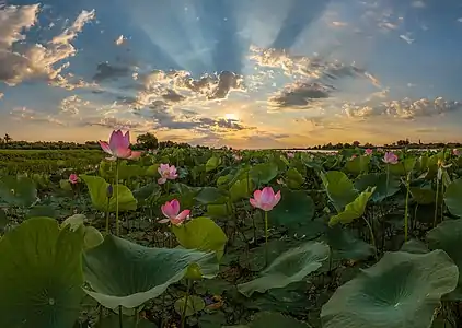 Цветение лотосов в Астраханском биосферном заповеднике