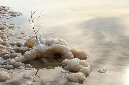 Берег озера Баскунчак. Соль покрыла ветку