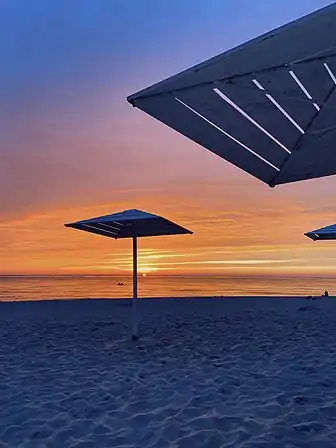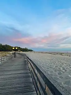 Калининградская область известна своими обустроенными морскими пляжами. Протяженность обустроенных пляжей в Калининградской области на 2021 год составляет 5 565 метров. Всего в 5 приморских муниципальных образованиях области 13 пляжей, два из которых в пос. Янтарный соответствуют всем международным стандартам качества и имеют награду "Голубой флаг"[16].