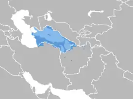 Общее число говорящих на туркменском языке — около 7 млн человек[2], бо́льшая часть которых проживает в Туркмении, где он закреплён конституцией как государственный язык.