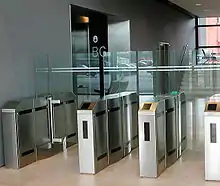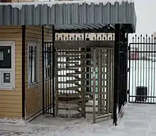 Турнике́т (от фр. tourner — вертеться, вращаться[1]) — устройство, предназначенное для ограничения прохода людей в случае, когда необходима проверка права входа и выхода для каждого проходящего. Основная задача турникета — создать физическую преграду перед человеком, до его авторизации, которая может осуществляться с помощью механизмов или электронных устройств, или до принятия решения сотрудником, отвечающим за пропуск на территорию. Турникет относится к классу систем контроля и управления доступом (СКУД).