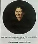- Портрет Фёдора Ивановича Турчанинова, отца художника» (1859), «Портрет Матрёны Ивановны Турчаниновой, матери художника» (1859).
