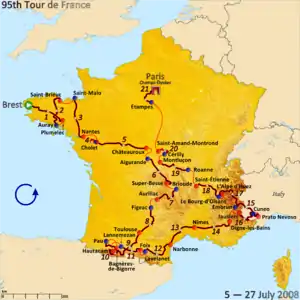 Тур де Франс-2008 преимущественно пройдёт во Франции, лишь однажды заехав в Италию.