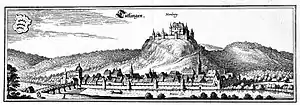 Во время Тридцатилетней войны французами был разрушен замок Гонберг находившийся близ города. Также возле города состоялась битва, 24 ноября 1643 года, между французами, занимавшими город Вюртемберг[7], которыми командовал граф И. Ранцау, заместителя раненого при Ротвейле маршала Гебриана (Guébriant) и соединёнными лигистами, куда входили: лигисты, императорские войска и лотарингцы под начальством баварского фельдмаршала Франца фон Мерси, которые взяли приступом Туттлинген, в освобождении города участвовал и граф Мельхиор фон Гацфельдт, и принудили И. Ранцау к сдаче города с 7½-тысячным отрядом и 10 пушками[1], остановив таким образом французское наступление (агрессию) в Баварию.