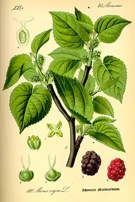 ![]() Шелковица чёрная. Типовой вид[1] типового рода. Ботаническая иллюстрация из книги О. В. Томе Flora von Deutschland, Österreich und der Schweiz, 1885 | ||||||||||||||||