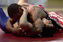 - борец во время исполнения собственного движения касается обеими лопатками ковра (в этом случае его противник получает 2 балла);