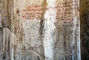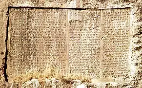 | Царские помещения, исписанные краской надписями в поддержку независимости Курдистана. | Повреждённый фрагмент летописи Сардури II. |