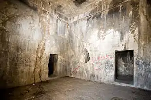 | Вход в «царские помещения» (в литературе также «Хорхорские пещеры» или «Комнаты Аргишти») | Схема царских помещений (Схема Русского археологического общества, 1916 г.) | Парадный зал, выдолбленный в скале (Фотография Русского археологического общества, 1916 г.) |