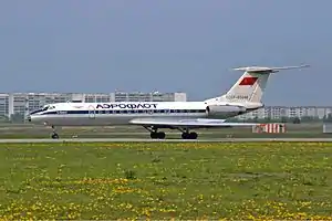 Ту-134 (по кодификации НАТО: Crusty — «Резкий») — советский пассажирский самолёт на 76—80 пассажиров для авиалиний малой и средней протяжённости, разработанный в начале 1960-х годов в ОКБ им. Туполева и выпускавшийся серийно с 1966 по 1984 год на Харьковском авиационном производственном объединении. Первый полёт выполнил 29 июля 1963 года, в эксплуатации с сентября 1967 года. Один из самых массовых пассажирских самолётов, собиравшихся в Советском Союзе. Всего, вместе с опытными и предсерийными образцами, было построено 854 самолёта всех модификаций. Полностью производство было прекращено в 1989 году[1]. Ту-134 поставлялся на экспорт в страны Варшавского договора.