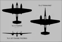 - Ту-2 «Параван» — построено два самолёта для испытания паравана — устройства, перерезающего тросы от воздушных аэростатов.[7][8]