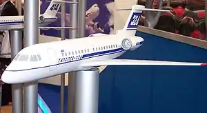 - Двухмоторный турбореактивный низкоплан со стреловидным крылом, Т-образным оперением, перекладывающимися стабилизаторами и задним расположением двигателей.