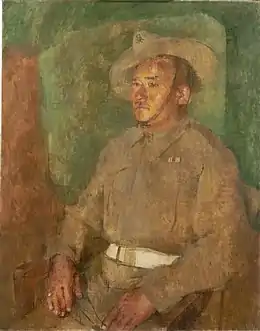 ![]() Портрет кисти Уильяма Колдстрима, 1943 год | |