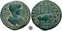 Легенда на древнегреческой монете из Финикии: язык собаки Геракла окрасился после съедения моллюска