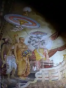Есть мнение, что Тхеравада происходит от секты Тамрапарджия, что означает «линия Шри-Ланки». Говорят, что среди миссионеров, отправленных за границу из Индии, были сын Ашоки Махинда (который учился у Могалипутта-Тиссы) и его дочь Сангхамитта, которые и распространили в Шри-Ланке буддизм[18]. Согласно летописи Махавамсы, их прибытие в Шри-Ланку произошло во время правления в Анурадхапуре Деванампия Тиссы(307—267 гг. до н. э.), который обратился в буддизм и помог построить первые буддийские ступы. Быстрому распространению буддизма и возникновению обширной сангхи способствовала светская власть центрального государства. Пещерные жилища монахов отражают рост и распространение новой религии. Многочисленные пещерные надписи Брахми свидетельствуют о дарах, подносимых домохозяевами и вождями сангхе. Бесспорная власть установилась после правления Даттхагамани и Ваттагамани (с середины II века до н. э. до середины II века до н. э.)[23].