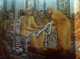 В исторической шри-ланкийской царский хронике «Чулавамсе» есть упоминания о том, что в это время монахи-тхеравадины «отвернулись друг от друга и наслаждались всеми видами раздоров»[42]. Согласно этой летописи многие монахи шри-ланкийской сангхи даже начали вступать в брак и заводить детей, ведя себя скорее как миряне[43]. Главным духовным лидером, помогавшим Паракрамабаху I в этих реформах, был Махатера Кассапа, опытный монах, хорошо разбиравшийся в писании и монашеской дисциплине[44]. Паракрамабаху I также известен тем, что он перестроил древние города Анурадхапура и Полоннарува, восстановив буддийские ступы и вихары[45]. Для руководства сангхой и рукоположениями в Шри-Ланке царь назначил из числа монахов Сангхараджу, или «Короля Сангхи» и двух его заместителей[40]. Царствование Параккамабаху I также привело к расцвету схоластики Тхеравады благодаря работе таких выдающихся учёных Шри-Ланки, как Ануруддха, Сарипутта Тхера, Махакассапа Тхераиз Димбулагала вихарыи Моггаллана Тхера[45]. Они работали над составлением подкомментариев по Типитаке, текстов по грамматике, конспектов и учебников по Абхидхамме и Винае, например, Абхидхамматтха Сангаха Ануруддхи.