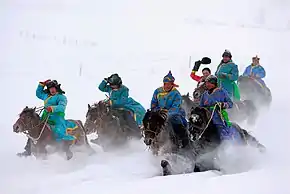 - Шагаа (Новый год по лунному календарю). Дата проведения праздника рассчитывается ламами по лунному календарю[28]. Празднество, как правило, начинается днём, накануне Шагаа. Совершаются молебны в буддийских храмах, театрализованные представления. Праздник утверждён Законом Республики Тыва от 12 февраля 1999 года № 143 «О праздничных днях Республики Тыва».