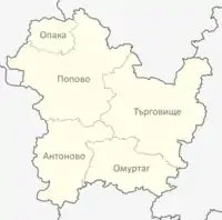 | Крупнейшие города | Тырговиште, Антоново, Омуртаг, Опака и Попово |