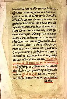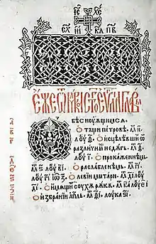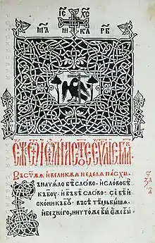 ![]() Начальная страница Евангелия от Матфея (экз. РНБ, Санкт-Петербург) | |