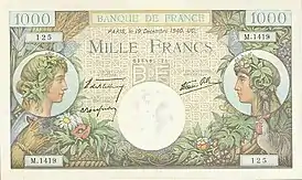 - 1000 francs type 1940 «Commerce et industrie», Банк Франции (фр.)