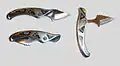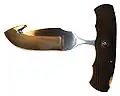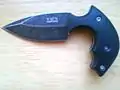 Тычковый нож с «Г»-образной рукоятью, производство компании «Viking Nordway», модель K333T. Клинок — сталь марки 440А с титановым покрытием, накладки на рукоять — микарта.