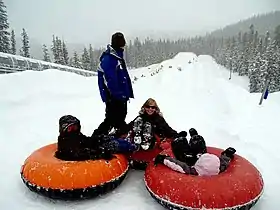 Тю́бинг (англ. tubing, от tube — труба) — катание на надувных санках (тюбах) по снегу или по воде. В разговорной речи также ватрушка, надувные санки, плюшки, бублики, пончики, тобогганы. Это вид активного отдыха, в процессе которого райдер постоянно совершает подъёмы в гору, испытывая полезные кардионагрузки (развивая сердце и легкие), тонизирует большое количество мышц и развивает координацию, что благотворно отражается на его развитии и здоровье. Катание на тюбах приобретает всё большую популярность в России не только детей, но и для взрослых.