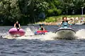 Буксируемый тюбинг позади гидроцикла на реке Миссисипи