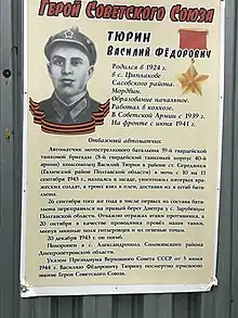 Тюрин Василий Фёдорович (22 августа 1924 — 20 декабря 1943) — старший сержант 59-й гвардейской танковой бригады 8-й гвардейского танкового корпуса, Герой Советского Союза.
